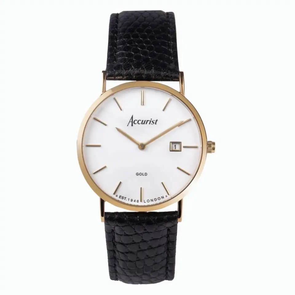 Accurist 7801 9ct Gold Black Leather Strap Watch - W7006