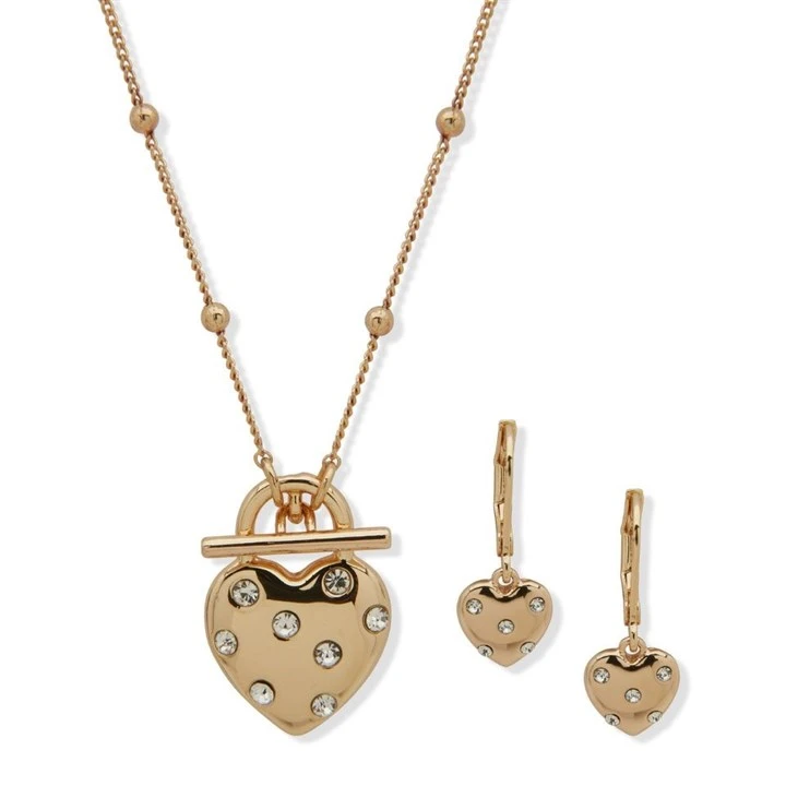 Anne Klein Gold Tone Crystal Heart Pendant and Earrings Set - J78412