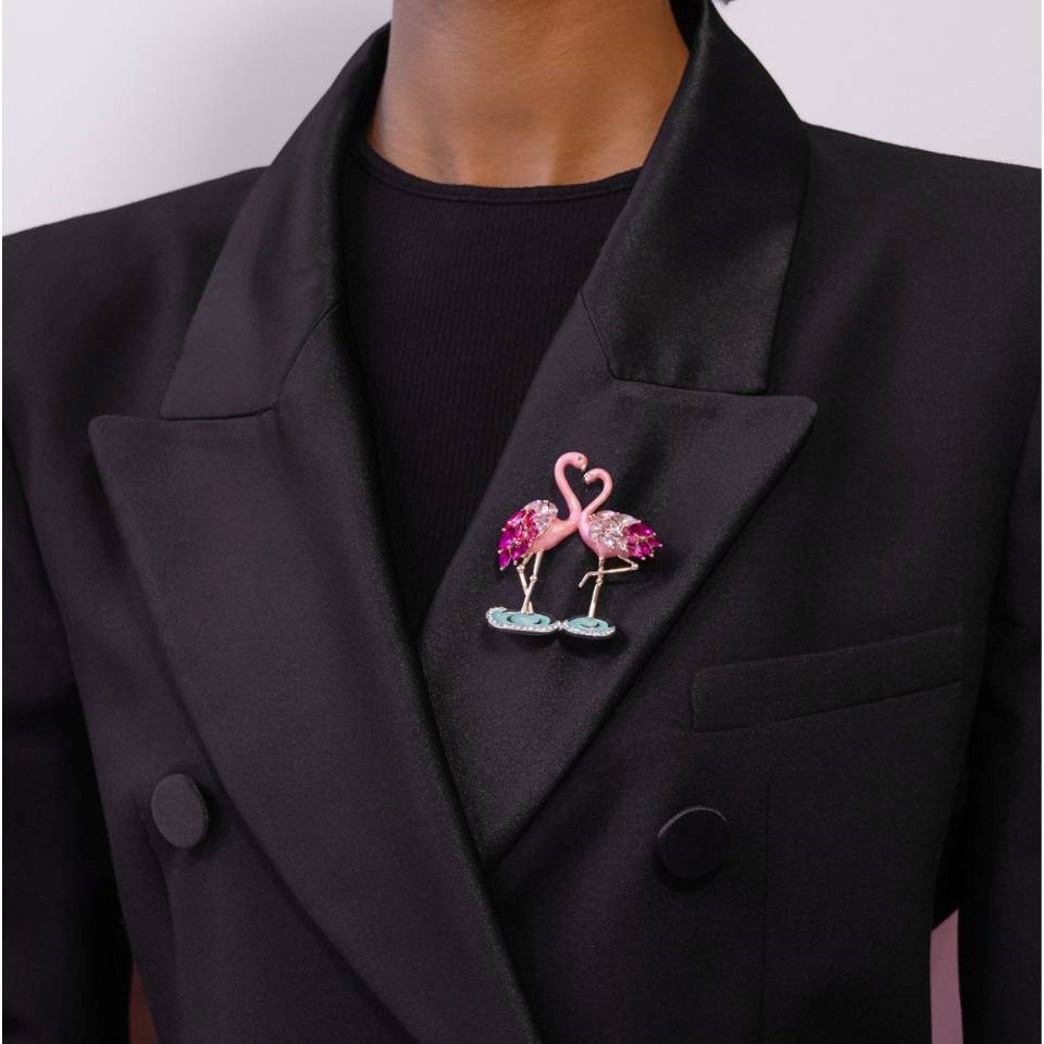 Anne Klein Gold Tone Multi Coloured Flamingo Brooch - J78401