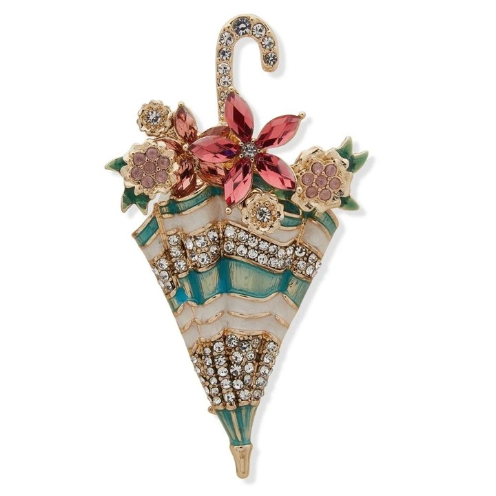 Anne Klein Gold Tone Multi Coloured Umbrella Brooch - J78392