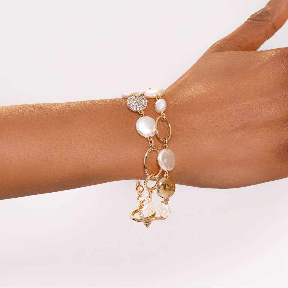 Anne Klein Gold Tone Pearl And Stone Bracelet - J78396
