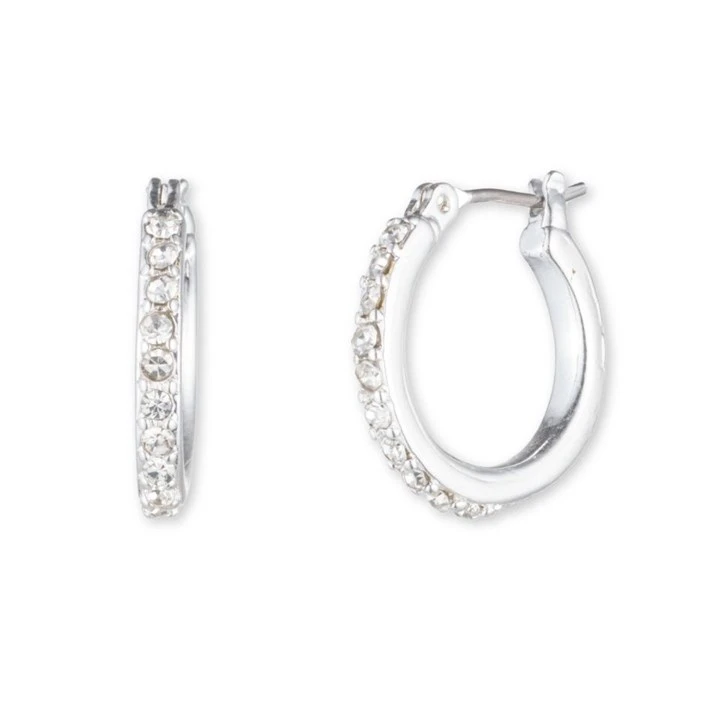 Anne Klein Silver Tone Crystal Hoop Earrings - J78197