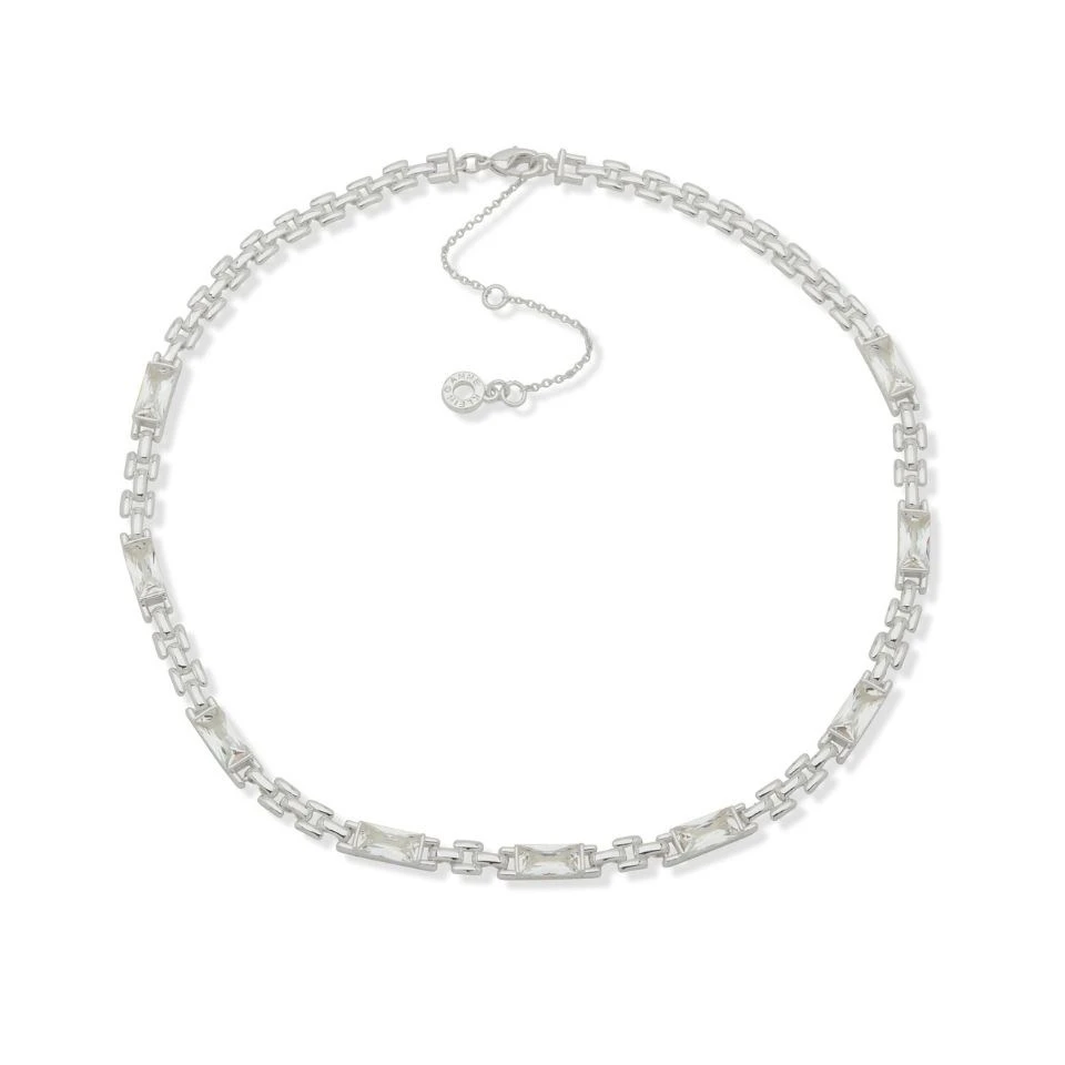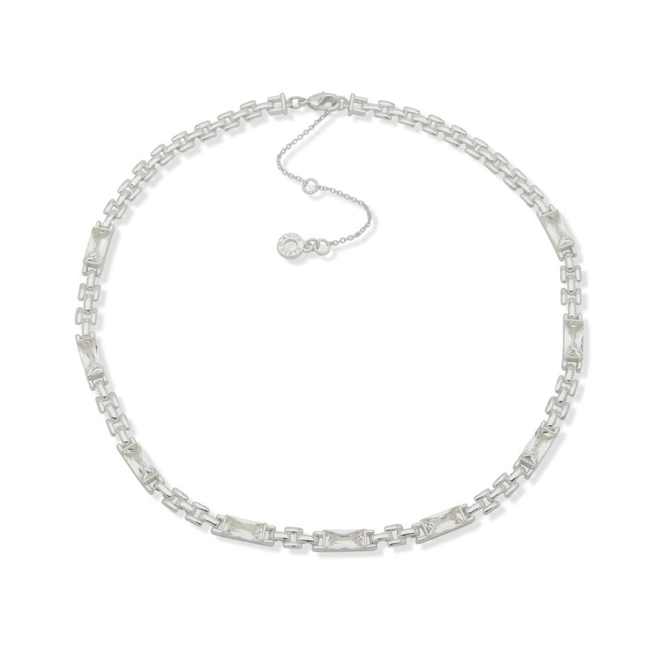 Anne Klein Silver Tone Cubic Zirconia Linked Chain Necklace - J78444
