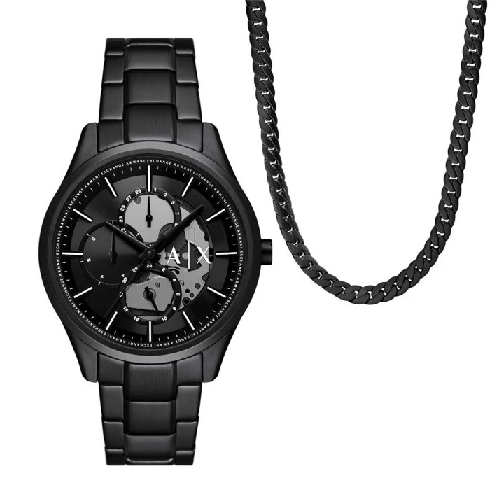 Armani Exchange AX7160SET Black IP Watch And Chain Set - W65455