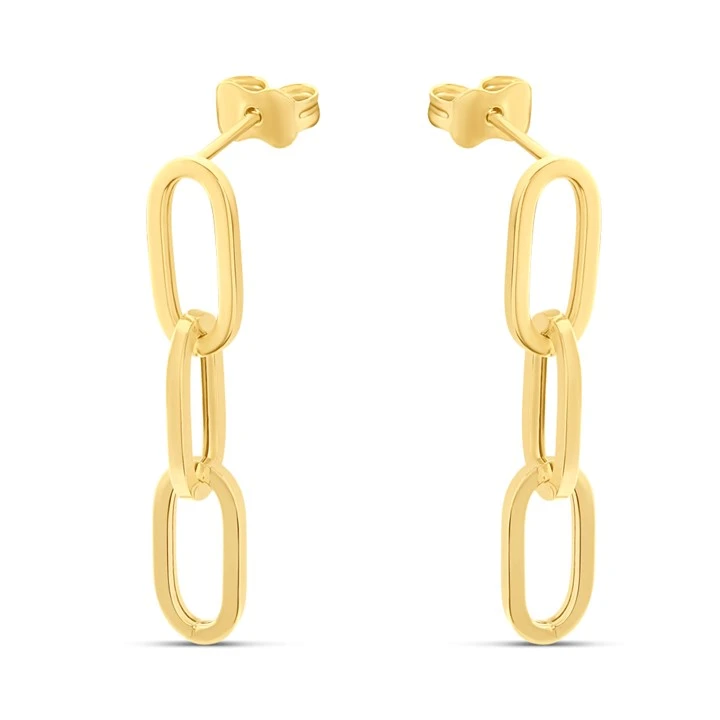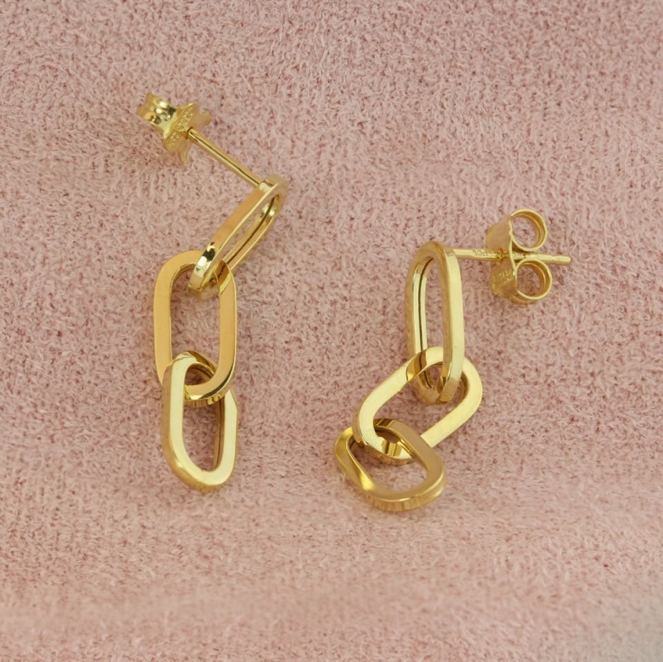 These contemporary paperclip style earrings have three links with a total drop of 30mm and secure butterfly fittings.