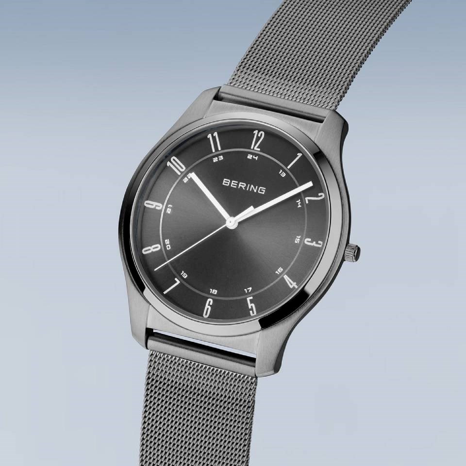 Bering 18340-377 Ultra Slim Grey Milanese Mesh Bracelet Watch - W74196