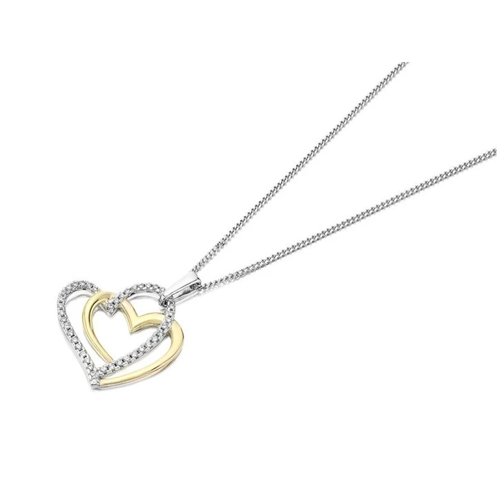 Briolette Silver And Gold Plated Cubic Zirconia Heart Necklace - J77102