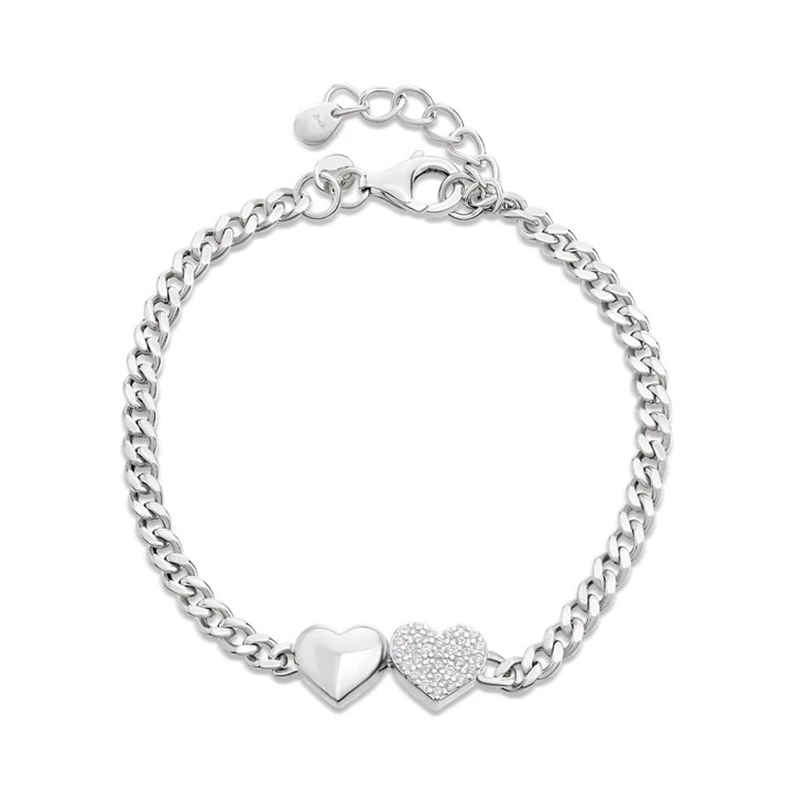 Briolette Silver CZ Double Heart Curb Bracelet - J77177