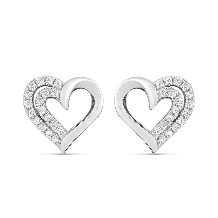 Briolette Silver CZ Heart Stud Earrings - J77173