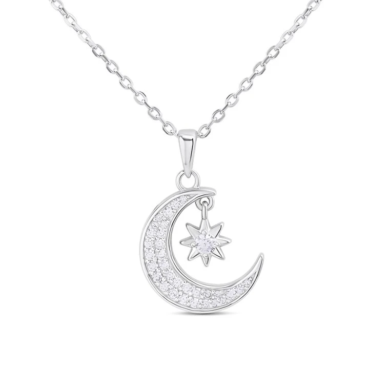 Briolette Silver CZ Moon And Star Necklace - J77186