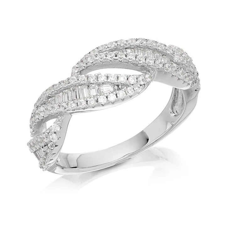 Briolette Silver Cubic Zirconia Double Band Wave Ring - J77118