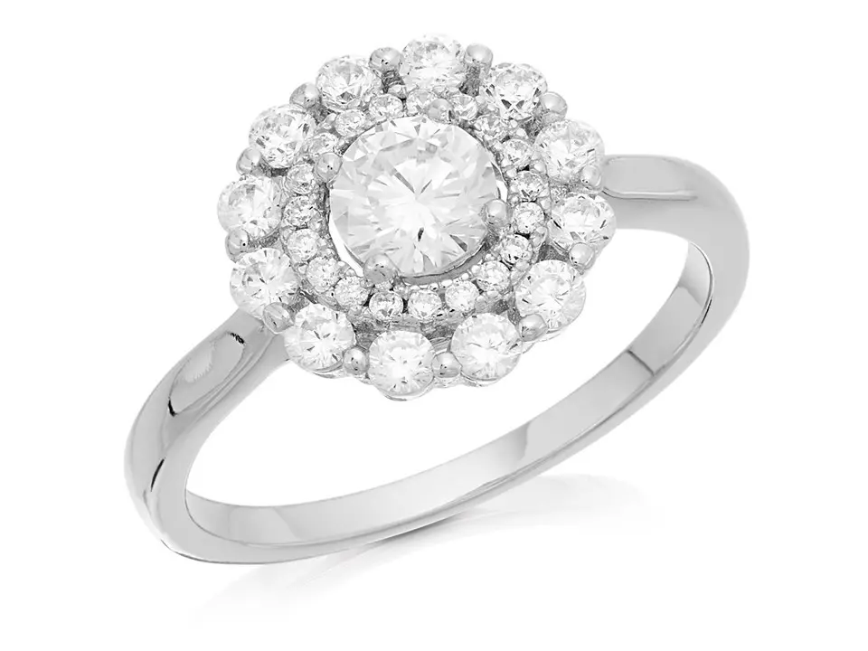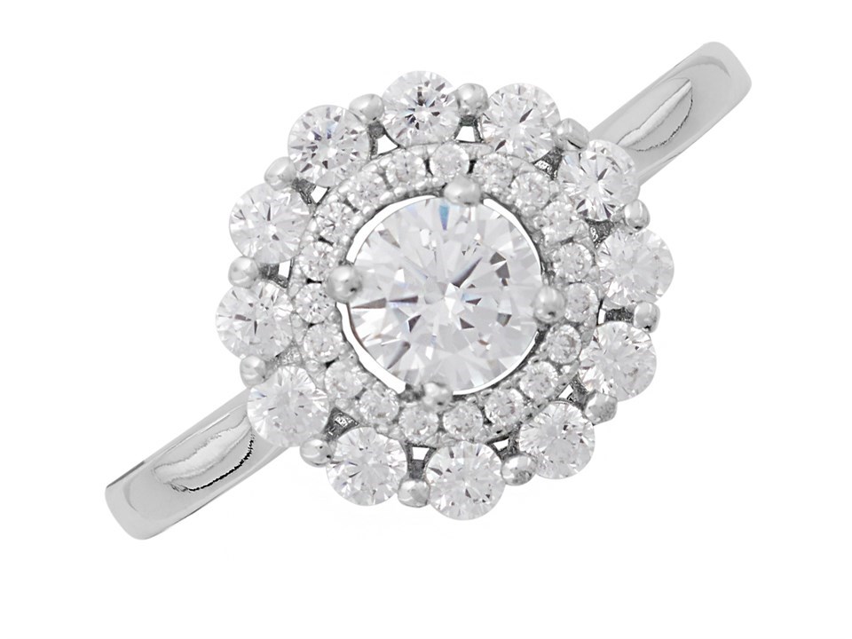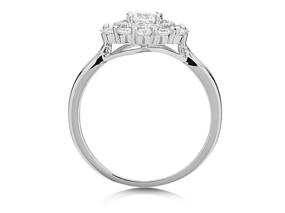 Briolette Silver Cubic Zirconia Flower Cluster Ring - J77117