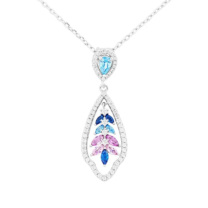Briolette Silver Multi Colour Cubic Zirconia Necklace - J77136