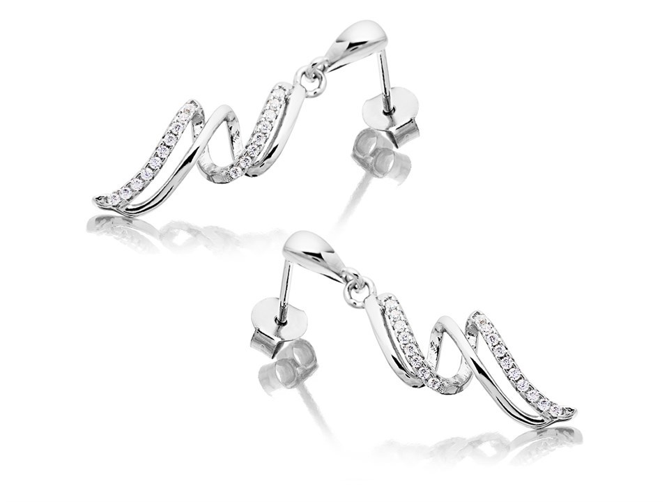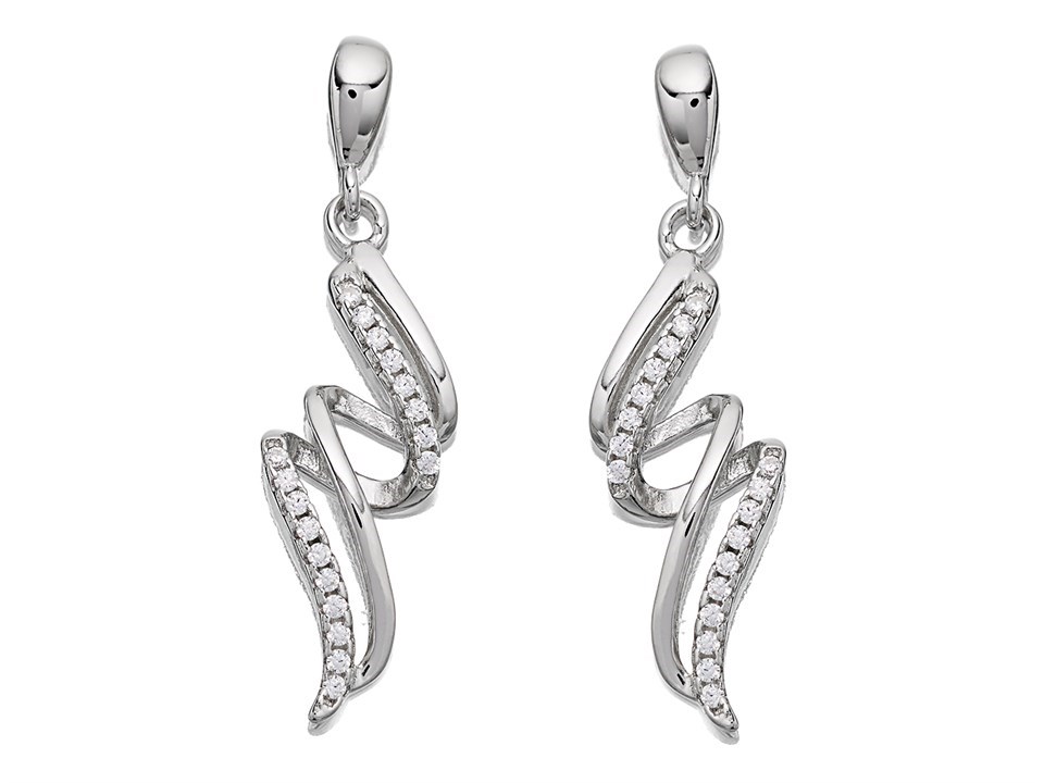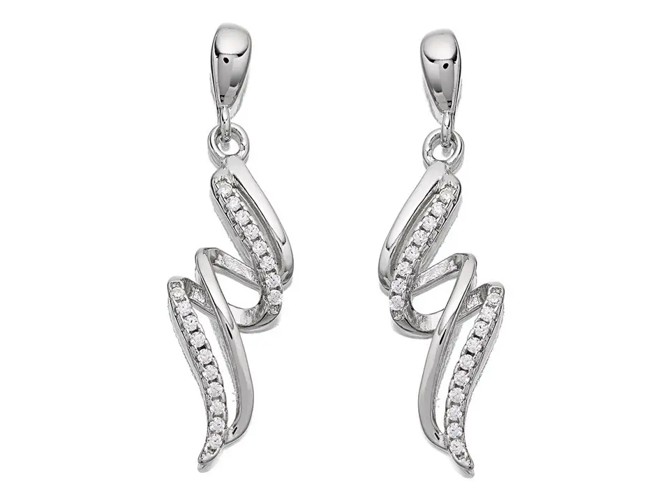 Briolette Silver Rhodium Plated CZ Wave Drop Earrings - J77125