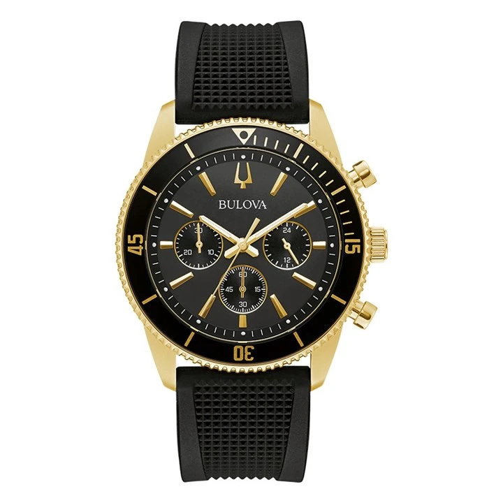 Bulova 98A250 Gold Tone Black Silicon Strap Watch - W09206