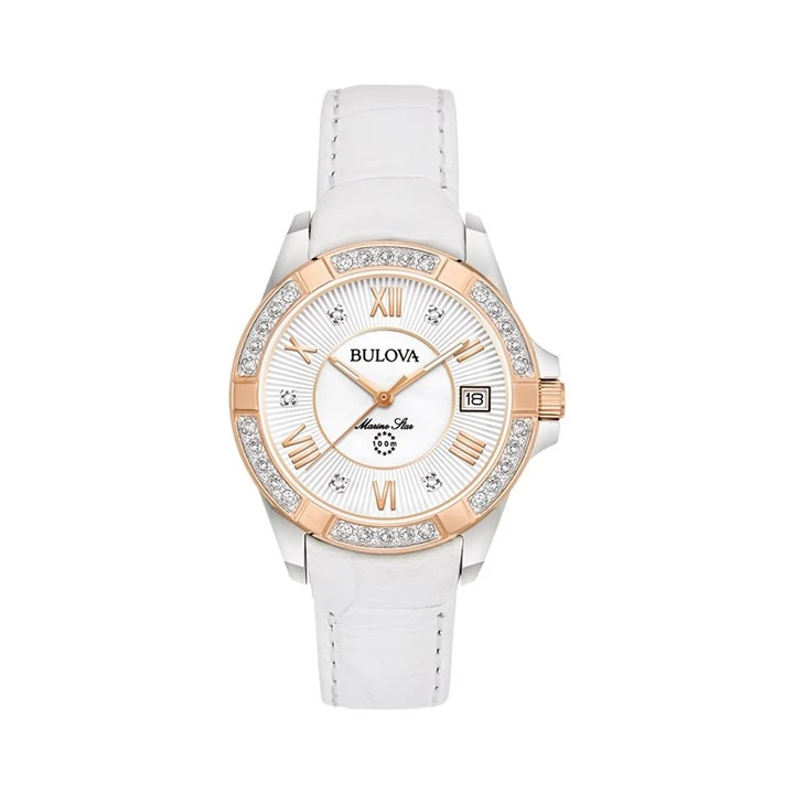Bulova Marine Star 98R233 White Leather Strap Watch - W83198