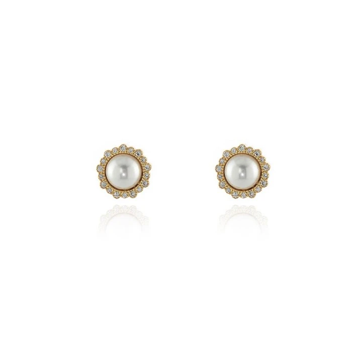 Cachet Gold Tone CZ and Simulated Pearl Stud Earrings - J74186