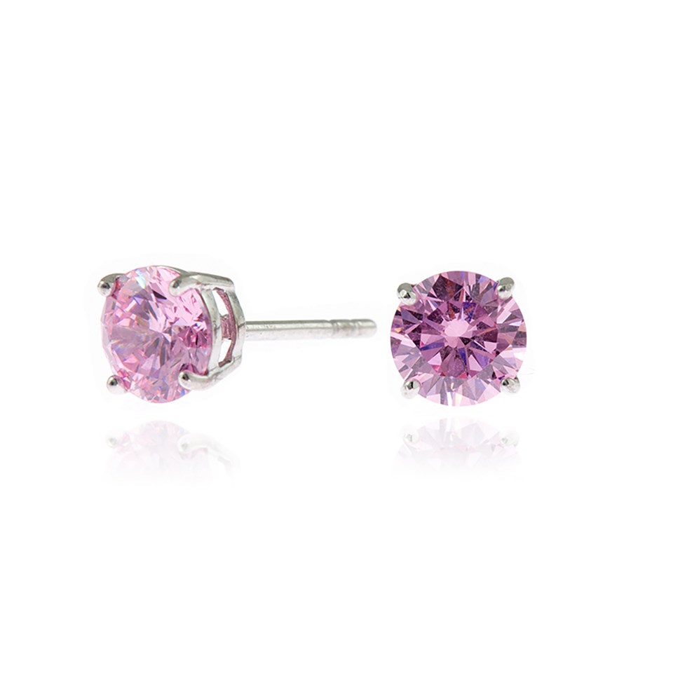 Cachet Silver Tone Adara 6mm Pink CZ Stud Earrings - J74237