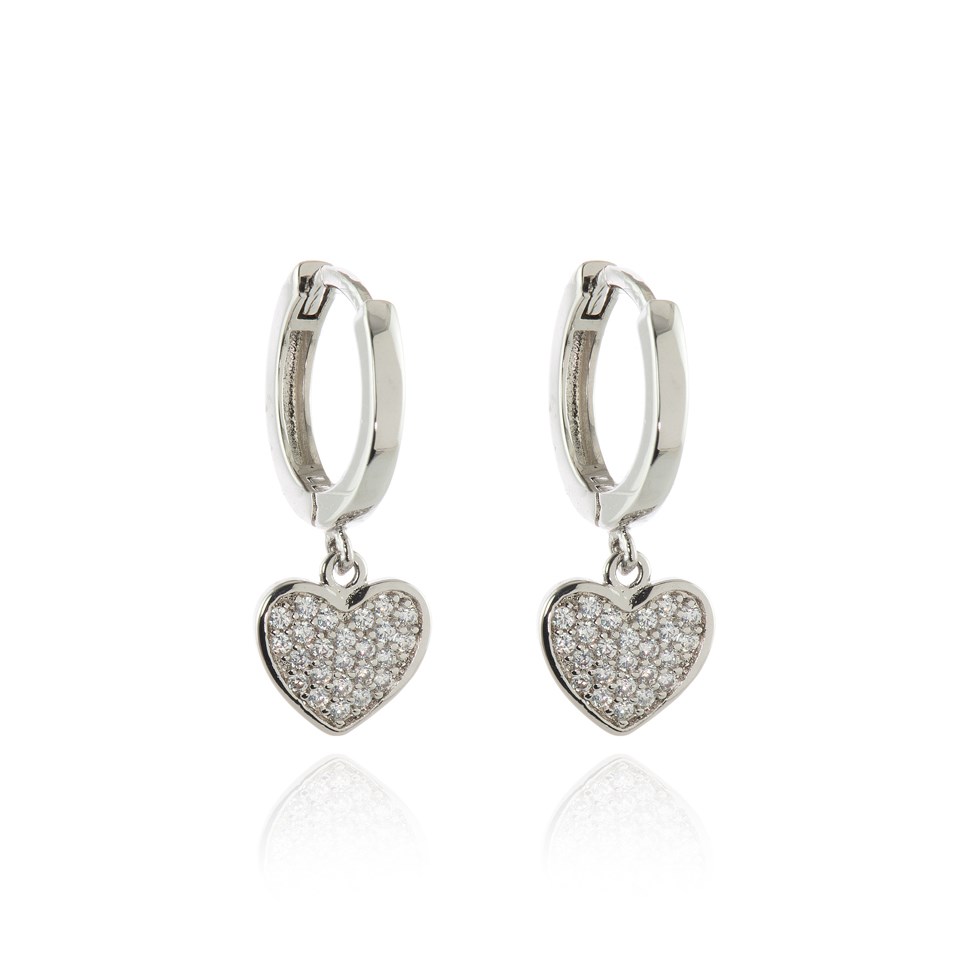Cachet Silver Tone CZ Heart Hoop Drop Earrings - J74229