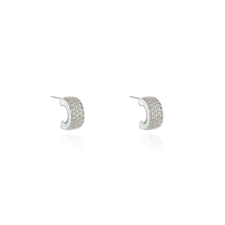 Cachet Silver Tone CZ Huggie Earrings - J74184