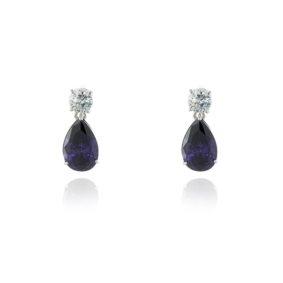 Cachet Silver Tone Purple CZ Drop Earrings - J74185