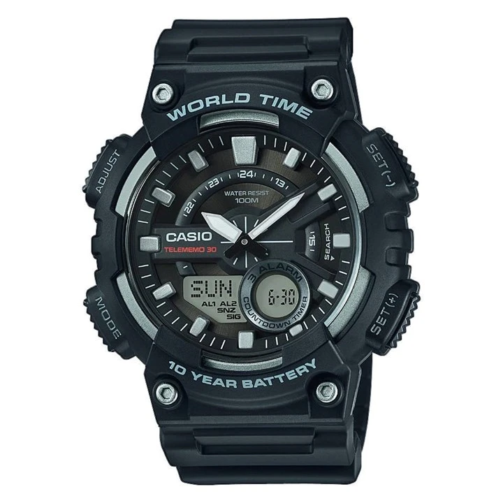 Casio AEQ-110W-1AVEF World Time Black Resin Strap Watch - W1525