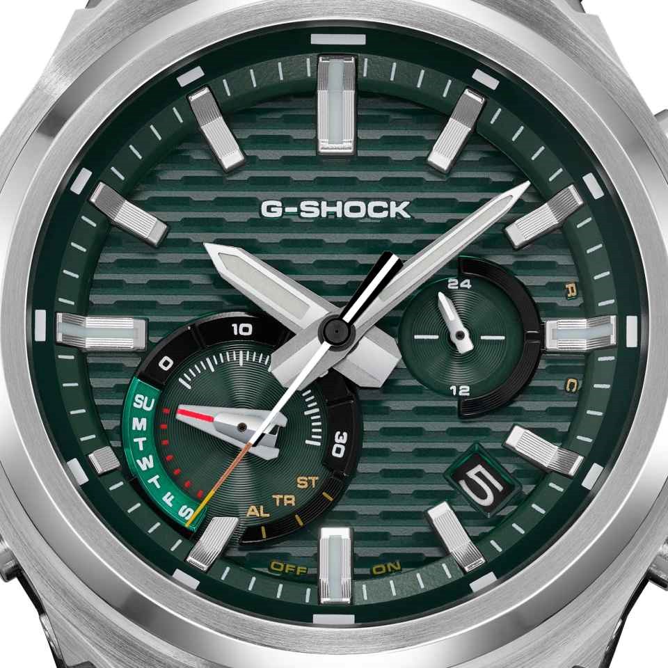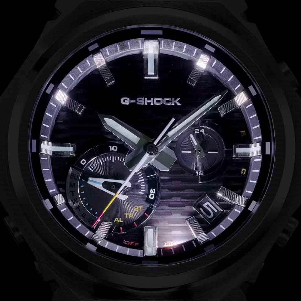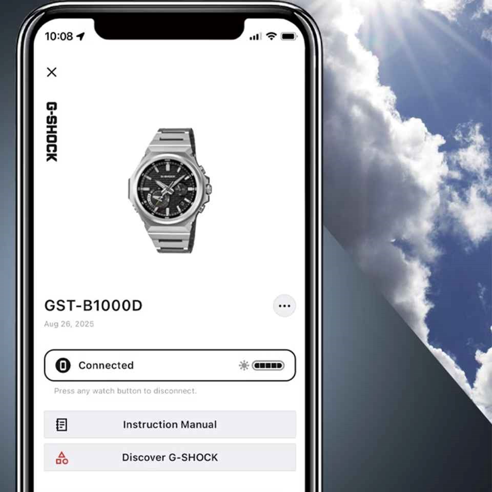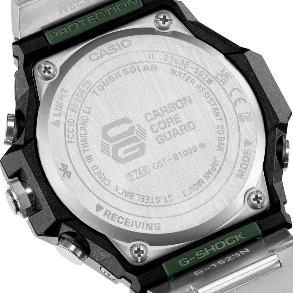 Built to endure, the GST-B1000D features a metal bezel to resist impact, a 44mm carbon-reinforced resin case for added strength, and urethane components at the band junctions to absorb shock and ease stress on the joints. Precision bonding and a slimmer module create a lighter, more compact form without compromising resilience. 200m water resistant.