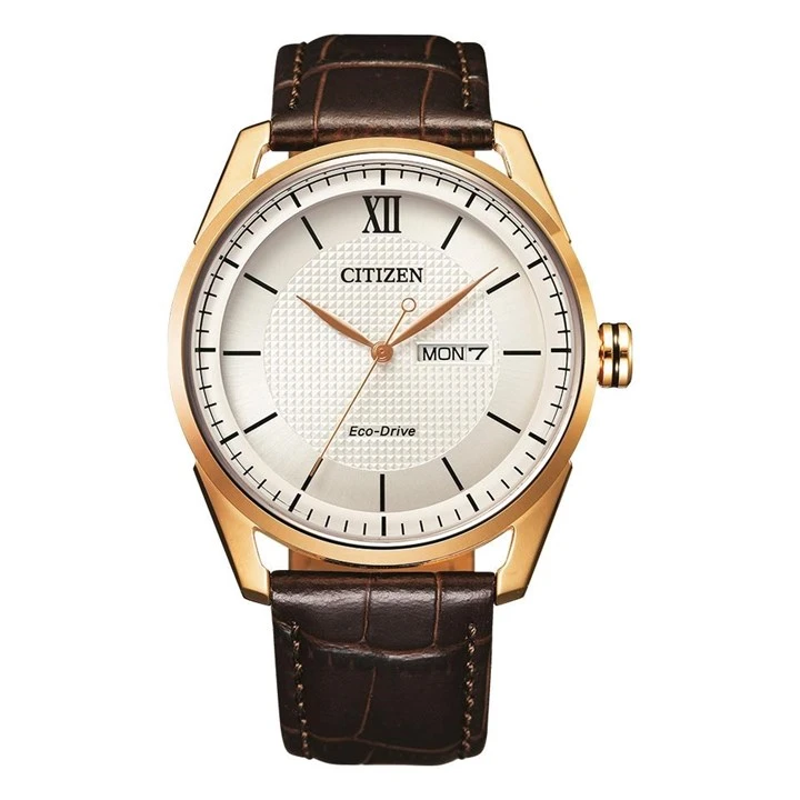 Citizen AW0082-01A Rose Gold Tone Eco-Drive Brown Leather Strap Watch - W38243