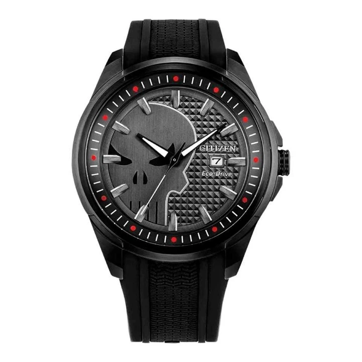 Citizen AW1609-08W Marvel Punisher Black Silicone Strap Watch - W38452