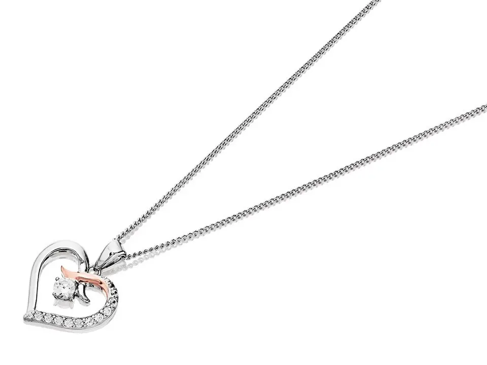 Clogau Silver And 9ct Rose Gold Kiss Heart Necklace - R48164