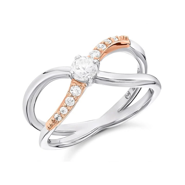 Clogau Silver And 9ct Rose Gold Kiss Ring - R48170