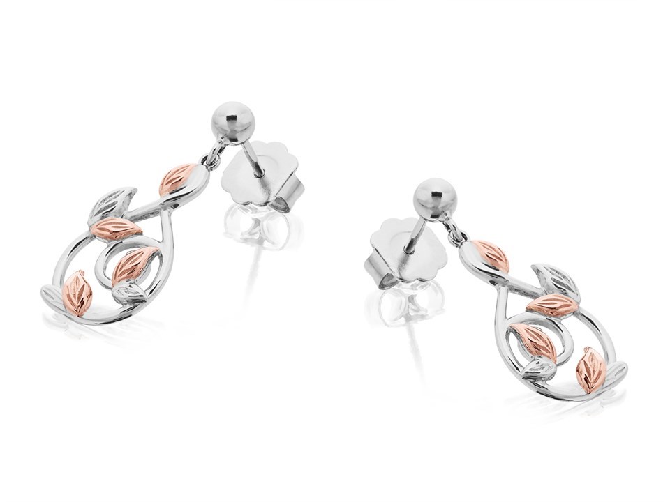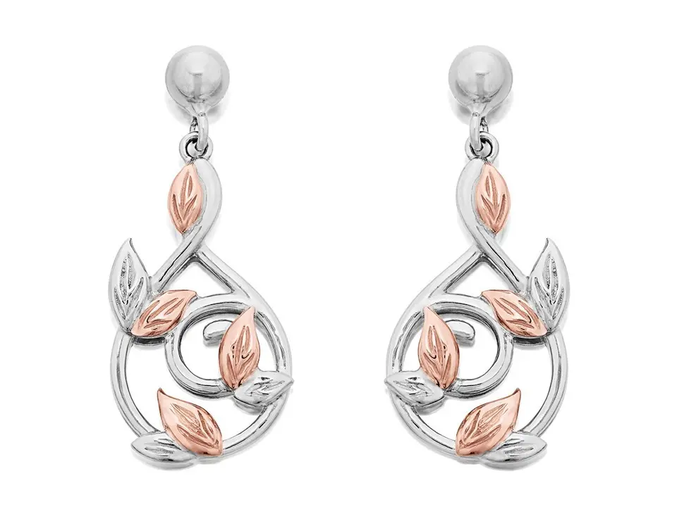 Clogau Silver And 9ct Rose Gold Tree Of Life Awelon Drop Earrings - G44172