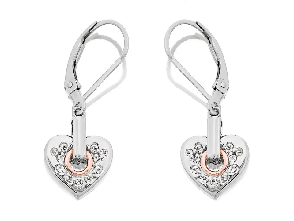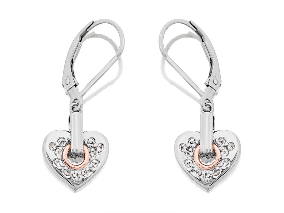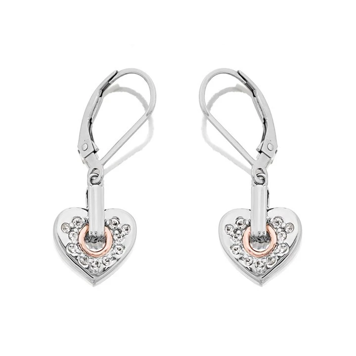 Clogau Silver And 9ct Rose Gold White Topaz Heart Drop Earrings - G44173