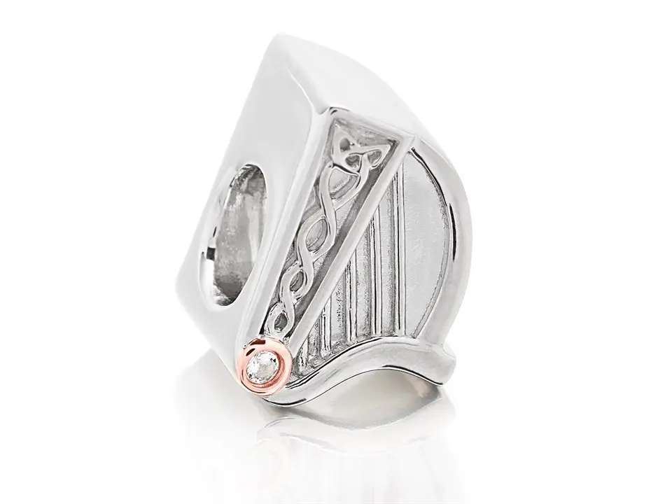 Clogau Silver And 9ct Rose Gold White Topaz Welsh Harp Bead Charm - G44157