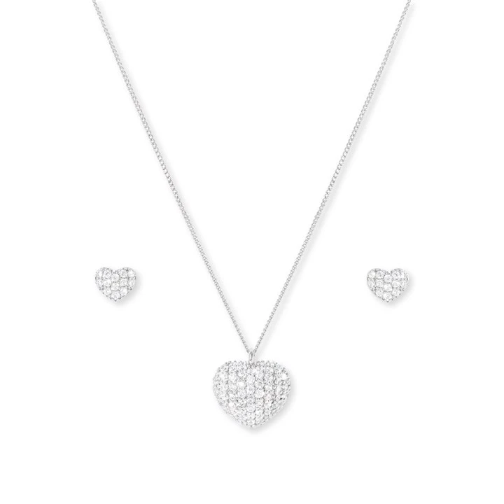 Crystal Allure CZ Heart Necklace And Earrings Set - J79127