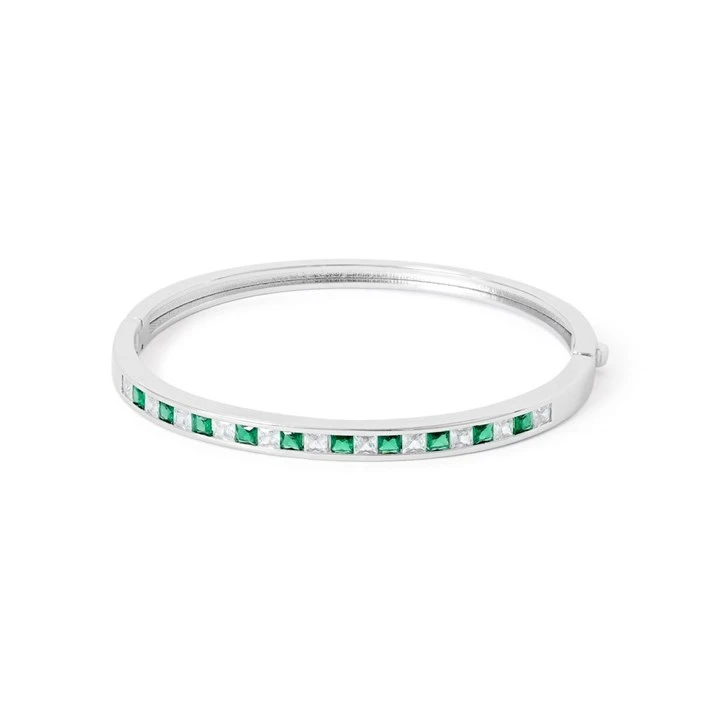 Crystal Allure Green and Clear CZ Bangle - J7975