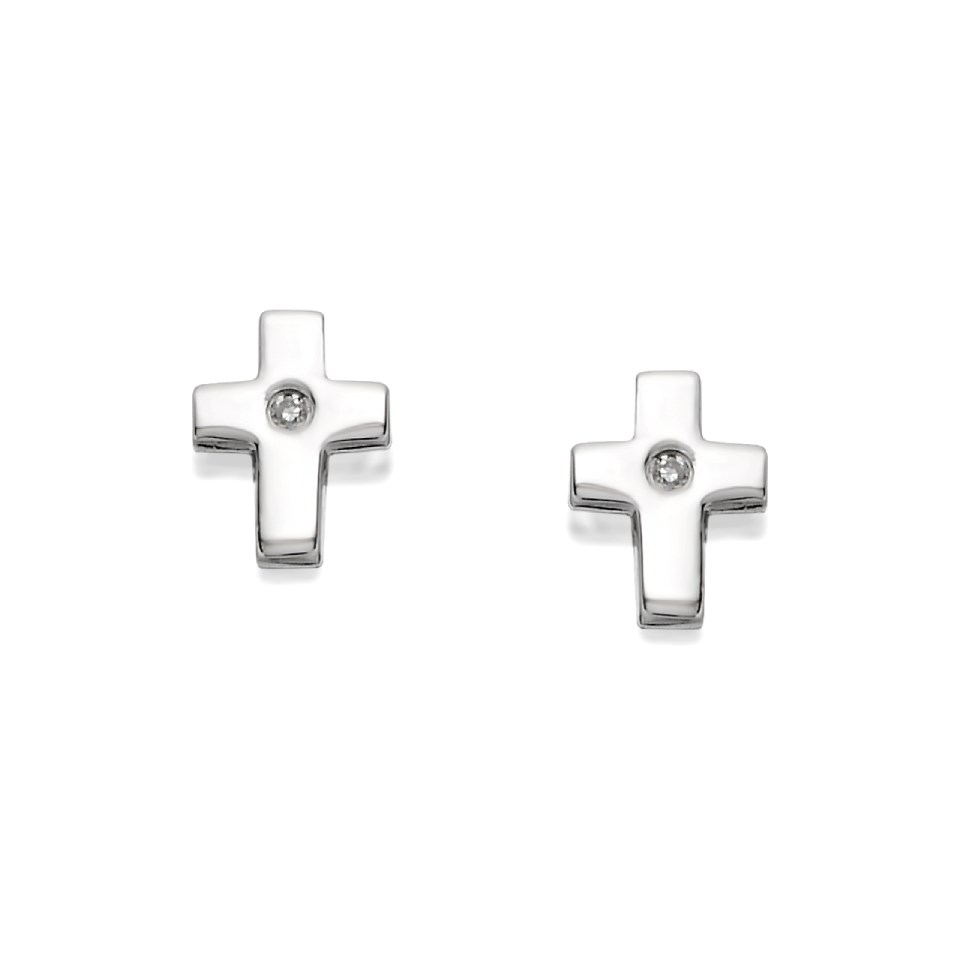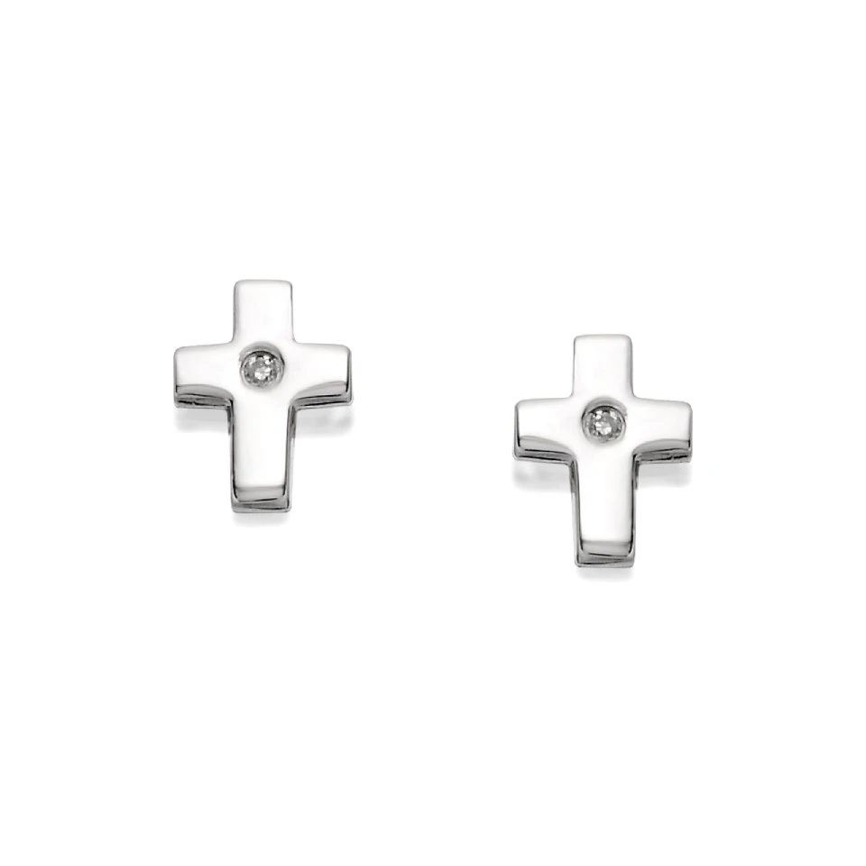 D For Diamond Silver Diamond Cross Children's Stud Earrings - F7302