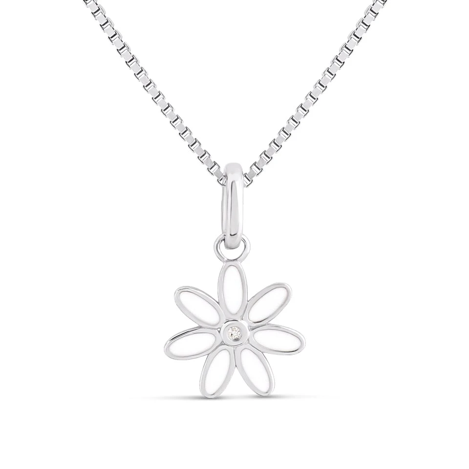 D For Diamond Silver Diamond Enamel Flower Necklace - F7336