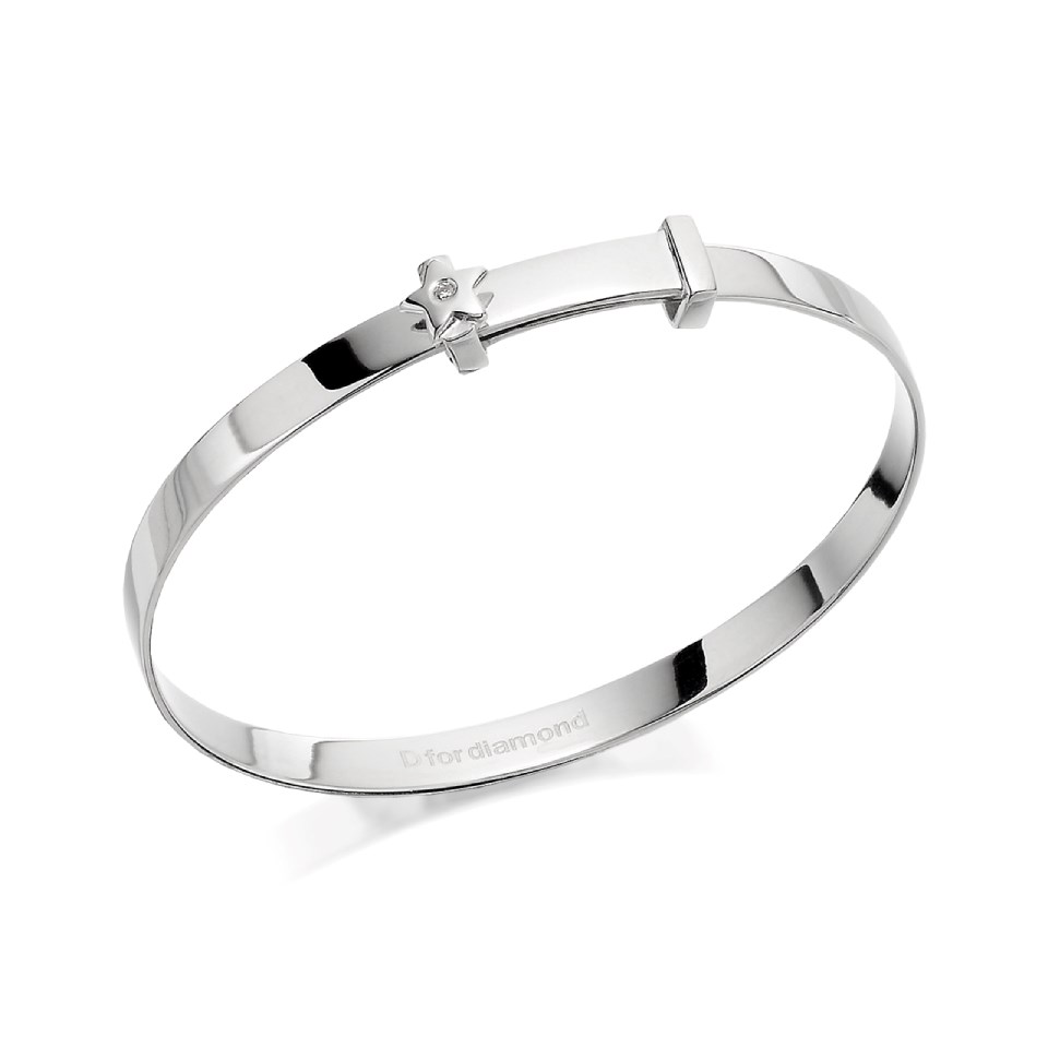 D For Diamond Silver Diamond Set Star Expandable Baby Bangle - F7305