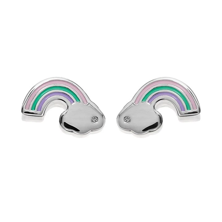 D For Diamond Silver Resin Rainbow Stud Earrings - F7315