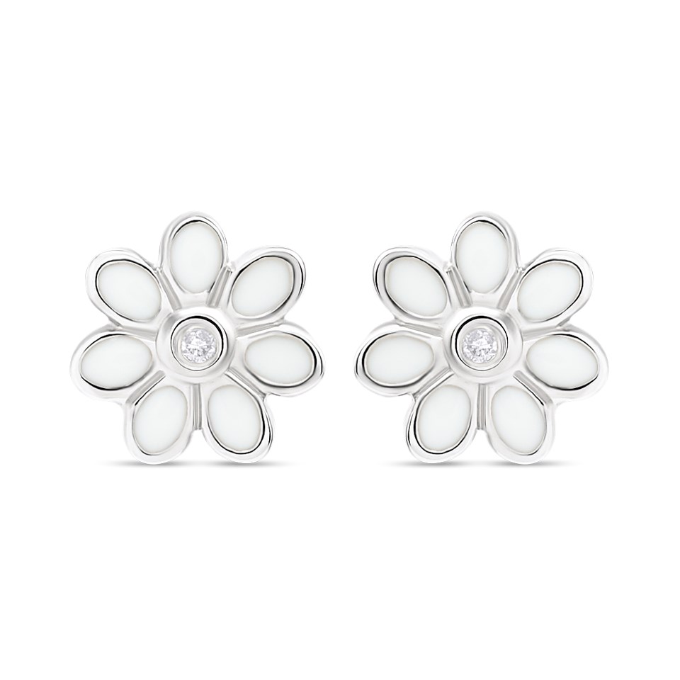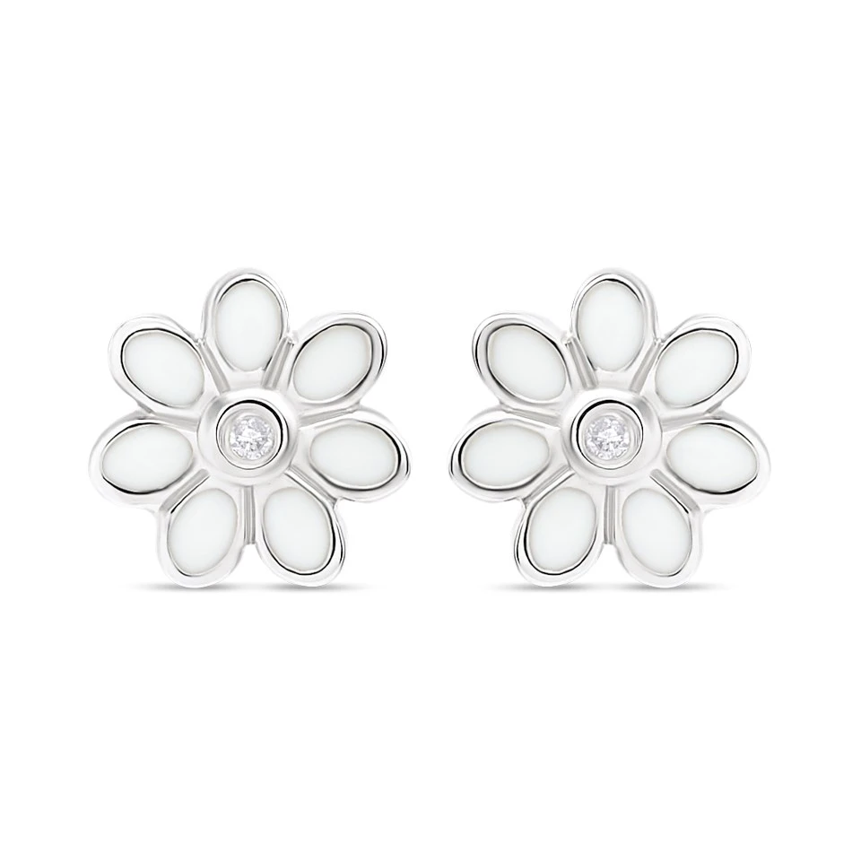 D4D Silver Diamond Enamel Flower Stud Earrings - F7349