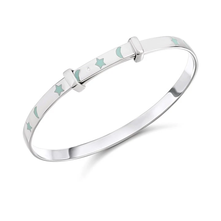 D4D Silver Diamond Glow In The Dark Enamel Star Bangle - F7350