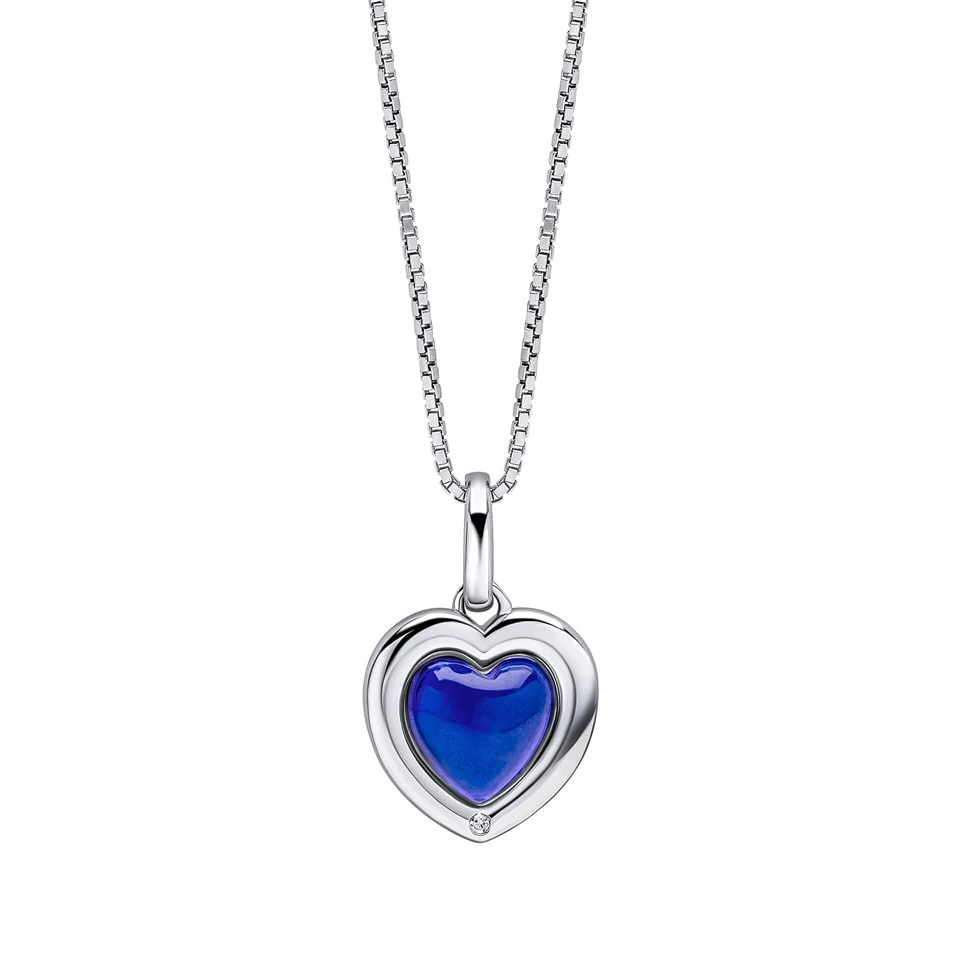 D4D Silver Diamond Mood Stone Heart Necklace - F7351