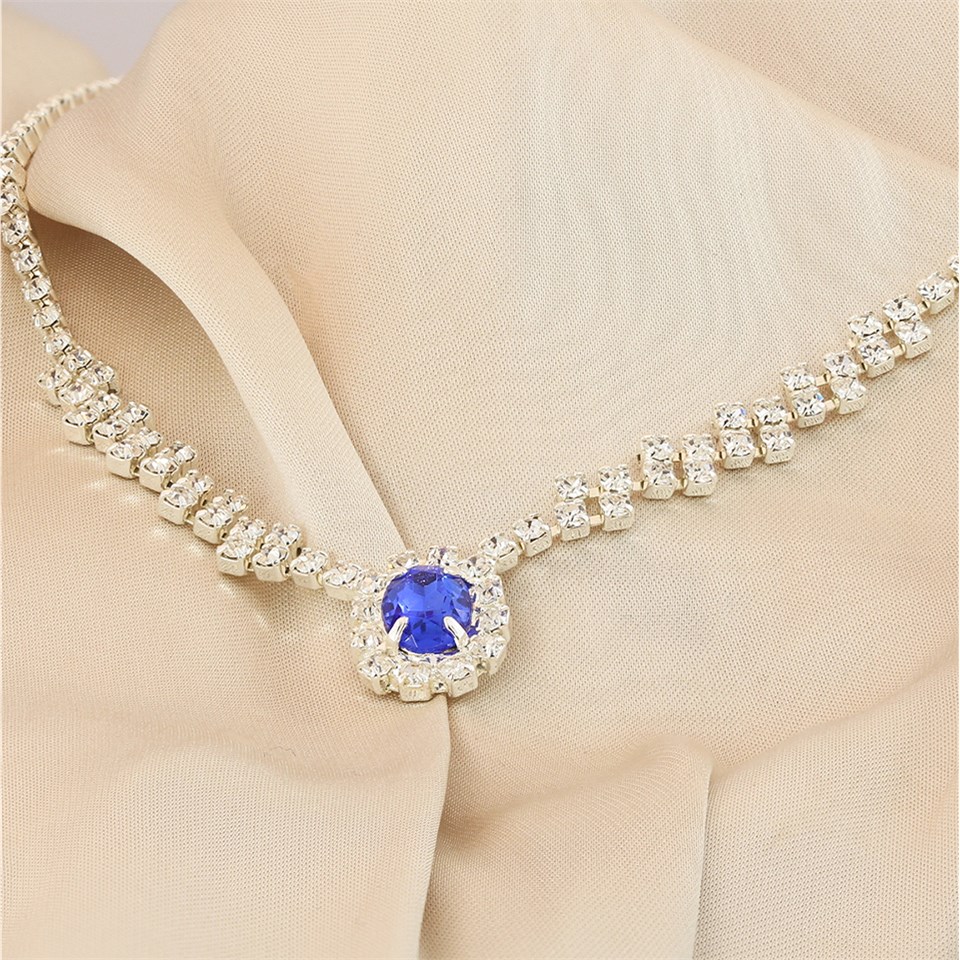 Diamante Crystal Blue Oval Halo Necklet - J5305