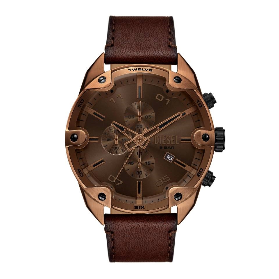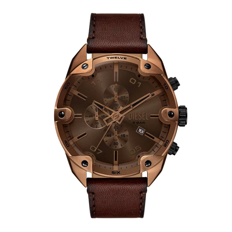 Diesel DZ4698 Spiked Chronograph Brown Leather Strap Watch - W11363
