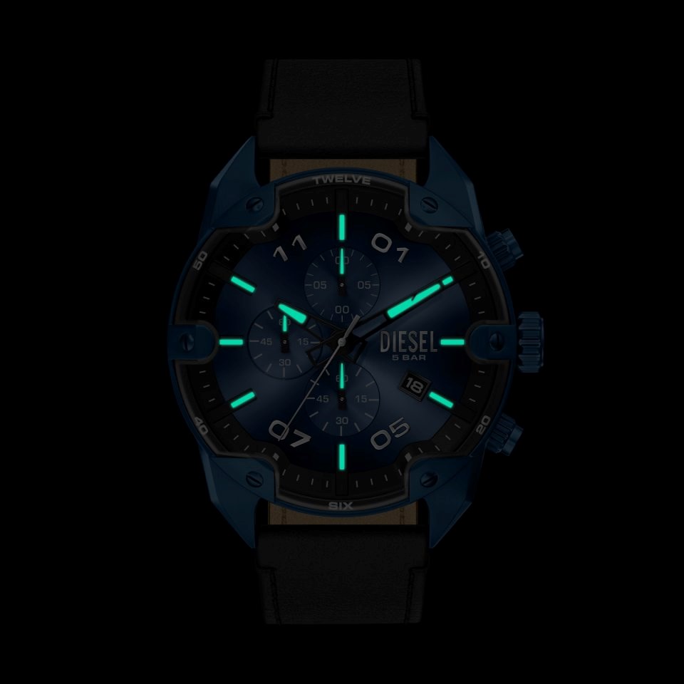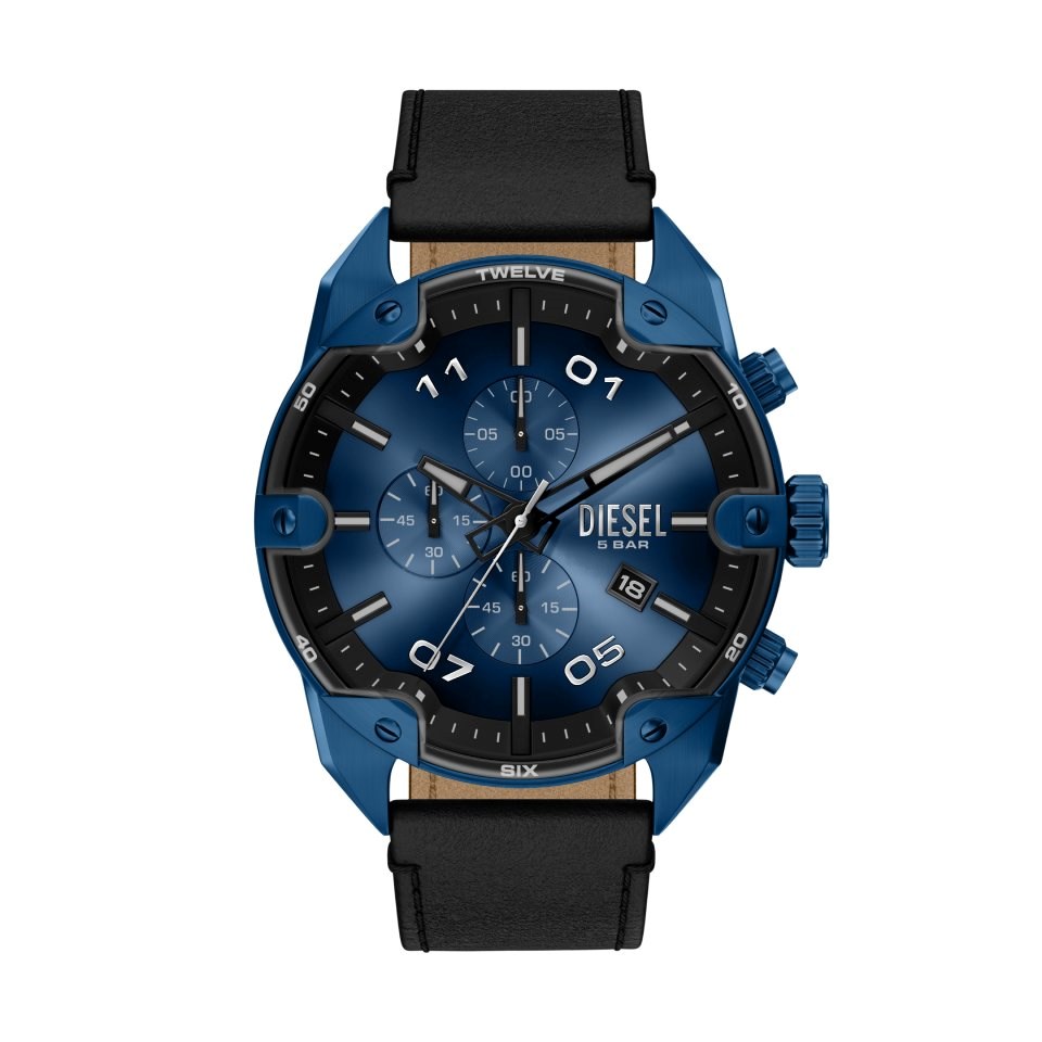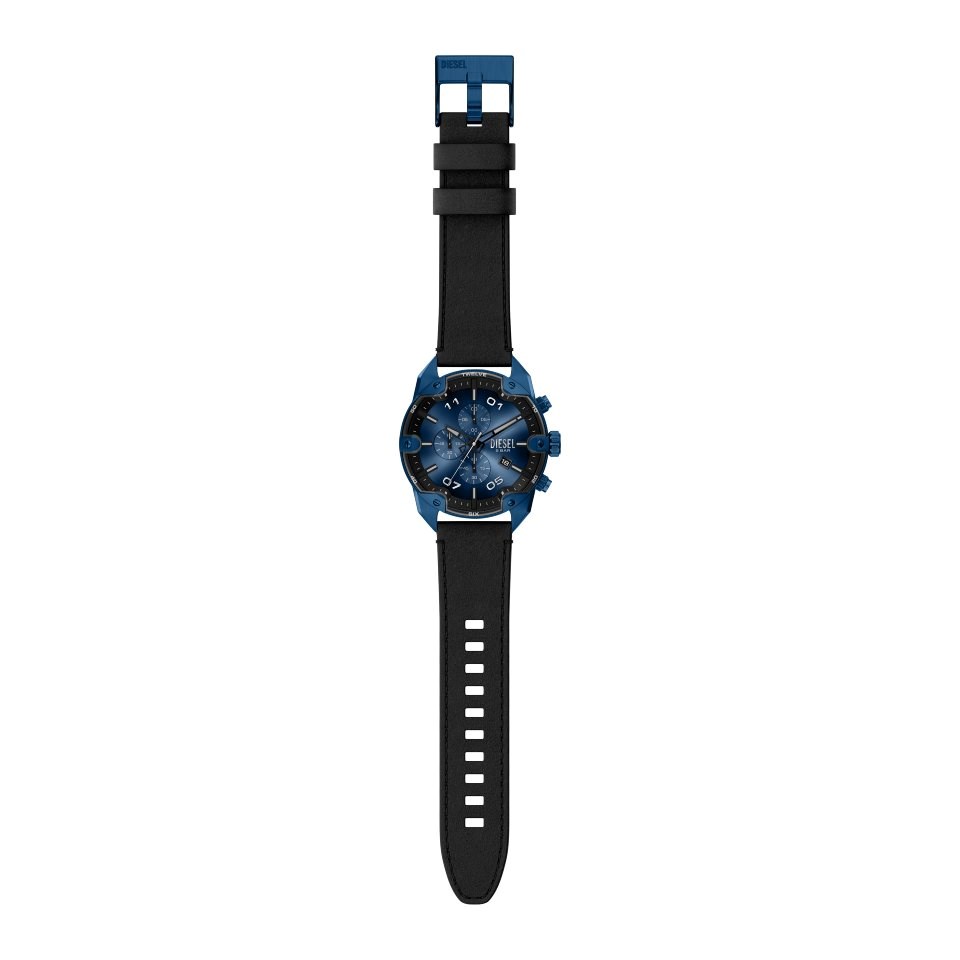 Diesel DZ4703 Spiked Chronograph Blue IP Black Leather Strap Watch - W11371