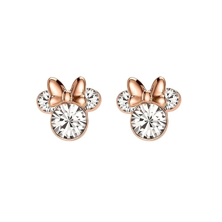 Disney Silver And Rose Plated Minnie Mouse Crystal Stud Earrings - 10mm - F6712