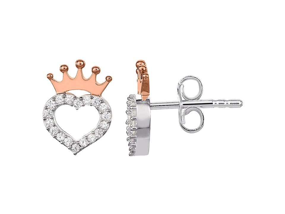 Disney Silver And Rose Plated Princess Crystal Stud Earrings - 11mm - F6734
