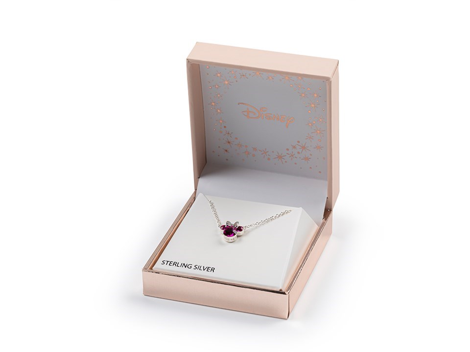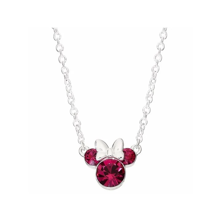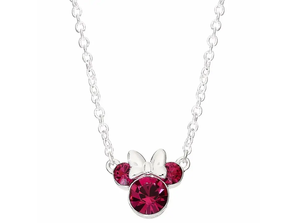 Disney Silver Minnie Mouse Fuchsia Crystal Necklace - F6719