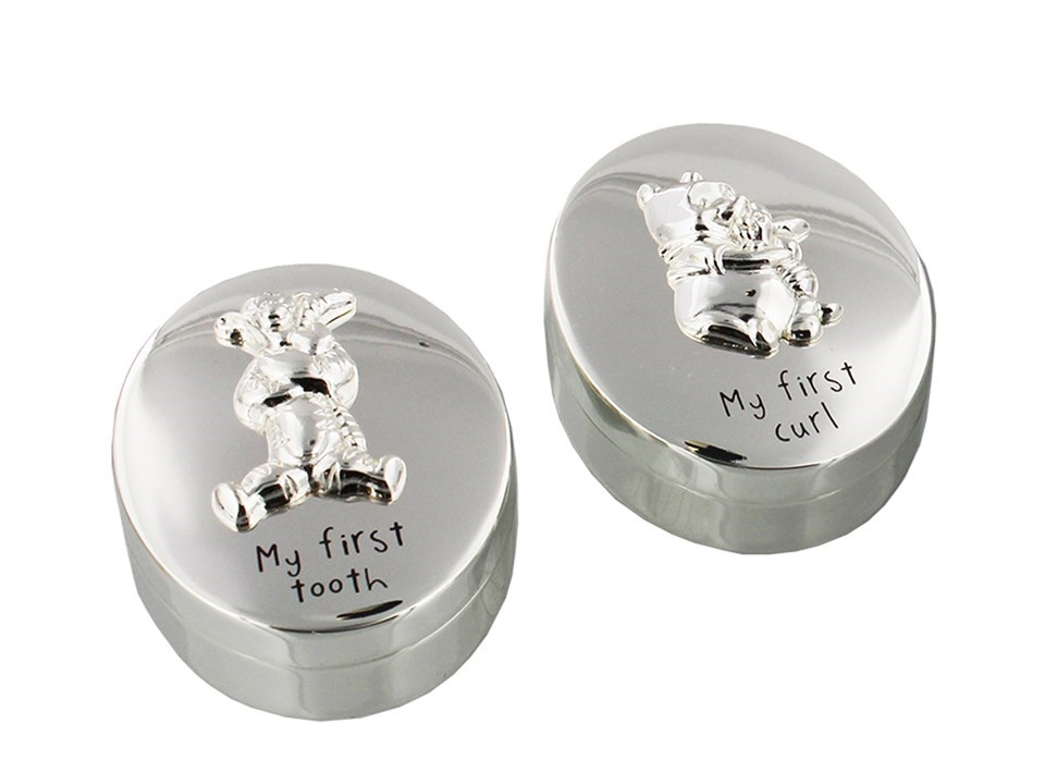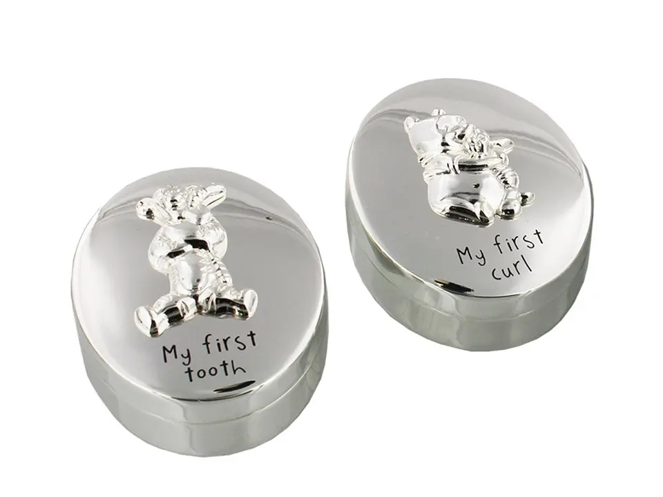 Disney Silver Plated Winnie The Pooh Tooth And Curl Boxes - P8792